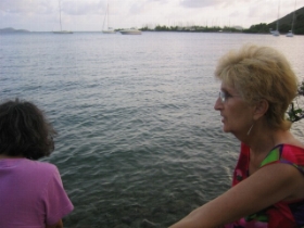 One of my favorite memories of times with Odile is her laugh - what I think of as her Irish trill. And when I think of it, I recall her laughing on the deck in Tortola, overlooking the water, and how beautiful and wonderful a space she had created there with Jim. And when I think of the water, I think of what a profound relationship she had with it, on the sea, under the sea, and by the edge of the sea, as captain, as diver, and as meditator gazing out on it. It is no jump at all from there to her profound relationships with people, her ability to make friends quickly, to invite people in, to welcome them. I will greatly miss Odile, but I will carry with me that feeling of warm welcome, and hope by extending it to others to honor her wonderful life. Here are a few pictures that evoke some of what I most appreciate about Odile. -John